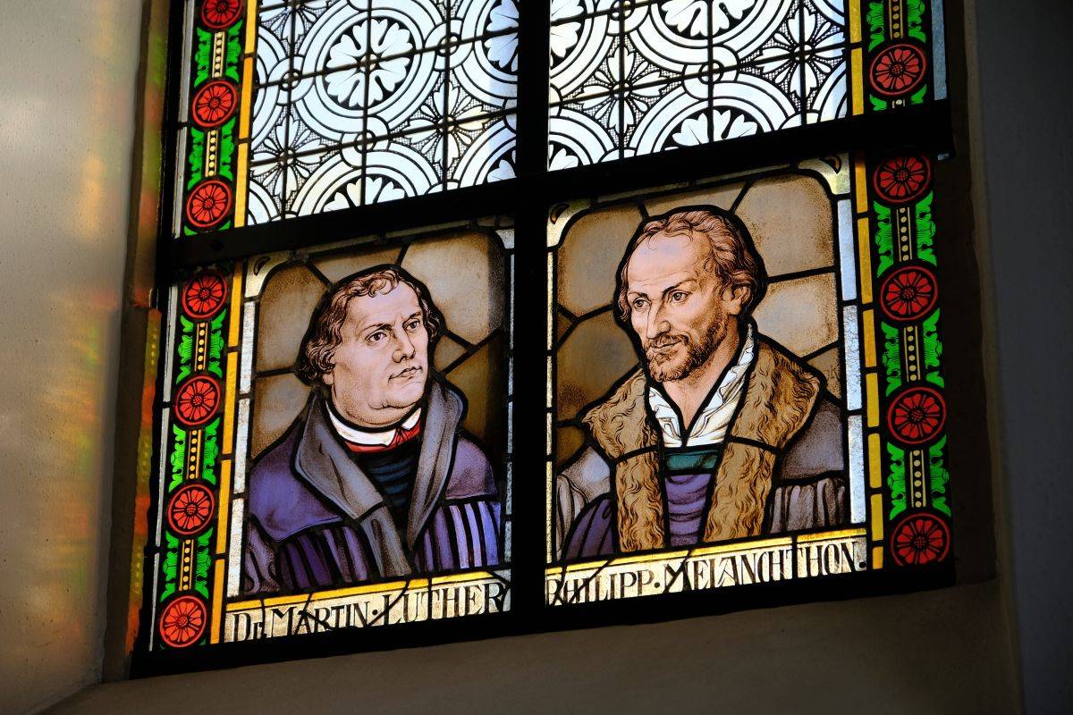 linkes Reformatorenfenster der Evangelischen Kirche Baiertal