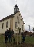 Die neu an der evangelischen Kirche gepflanzte Linde wird noch einige Jahre brauchen, bis sie ihren Beitrag zur Nahrungsversorgung der Baiertaler Insekten leisten kann. Daher wurde auf Anregung von Frau Krewing-Rambausek und in Abstimmung mit Frau Stein als Umweltbeauftragte der Stadt Wiesloch beschlossen, durch das Pflanzen von Büschen das Nektarangebot schnell zu verbessert. Durch die Auswahl der Büsche -Heckenrose, Kornelkirsche, Zwergmispel, Holunder und Schneeball- sind über die gesamte Blühsaison hinweg Nektarquellen auf dem Gelände der Kirche vorhanden, so dass auch für Insekten, die später im Jahr unterwegs sind, der Tisch gedeckt ist. Und wenn sie eine ausreichende Größe erreicht haben, sind die Büsche auch Aufenthaltsort und Brutplatz für Singvögel, denen wiederum die Insekten als Nahrungsquelle dienen. Im Herbst und Winter profitieren Stand- und Zugvögel vom reichhaltigen Früchteangebot. Die Patenschaft und die Kosten für die Linde wurden von den Mitgliedern des Kirchenchors übernommen, die Sträucher hat der Baiertaler Ortschaftsrat Jörg Deckarm gespendet.